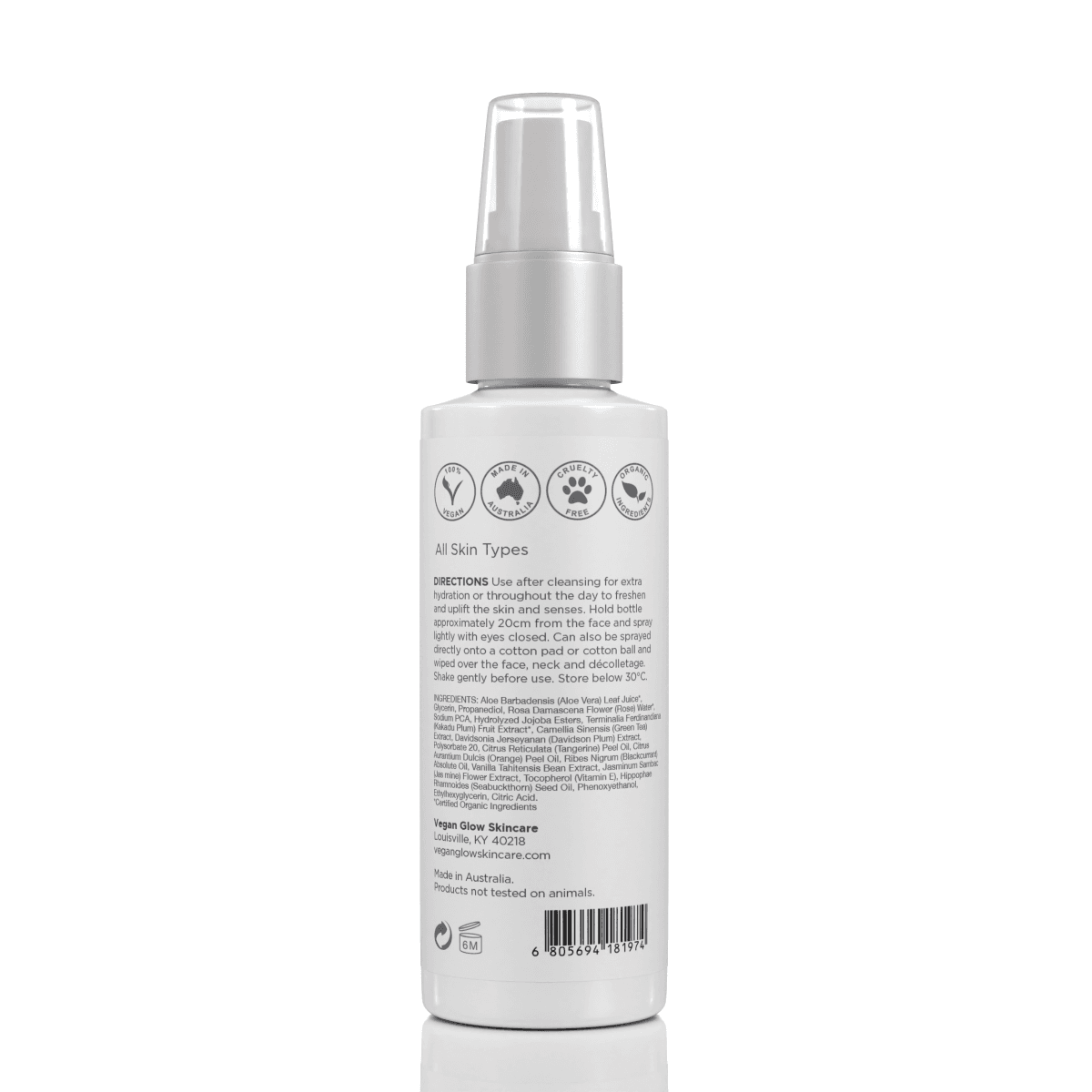 Aloe Barbadensis (Aloe Vera) Leaf Juice*, Glycerin, Propanediol, Rosa Damascena Flower (Rose) Water*, Sodium PCA, Hydrolyzed Jojoba Esters, Terminalia Ferdinandiana (Kakadu Plum) Fruit Extract*, Camellia Sinensis (Green Tea) Extract, Davidsonia Jerseyanan (Davidson Plum) Extract, Polysorbate 20, Citrus Reticulata (Tangerine) Peel Oil, Citrus Aurantium Dulcis (Orange) Peel Oil, Ribes Nigrum (Blackcurrant) Absolute Oil, Vanilla Tahitensis Bean Extract, Jasminum Sambac (Jasmine) Flower Extract, Tocopherol (Vitamin E), Hippophae Rhamnoides (Seabuckthorn) Seed Oil, Phenoxyethanol, Ethylhexyglycerin, Citric Acid. *Certified Organic Ingredients