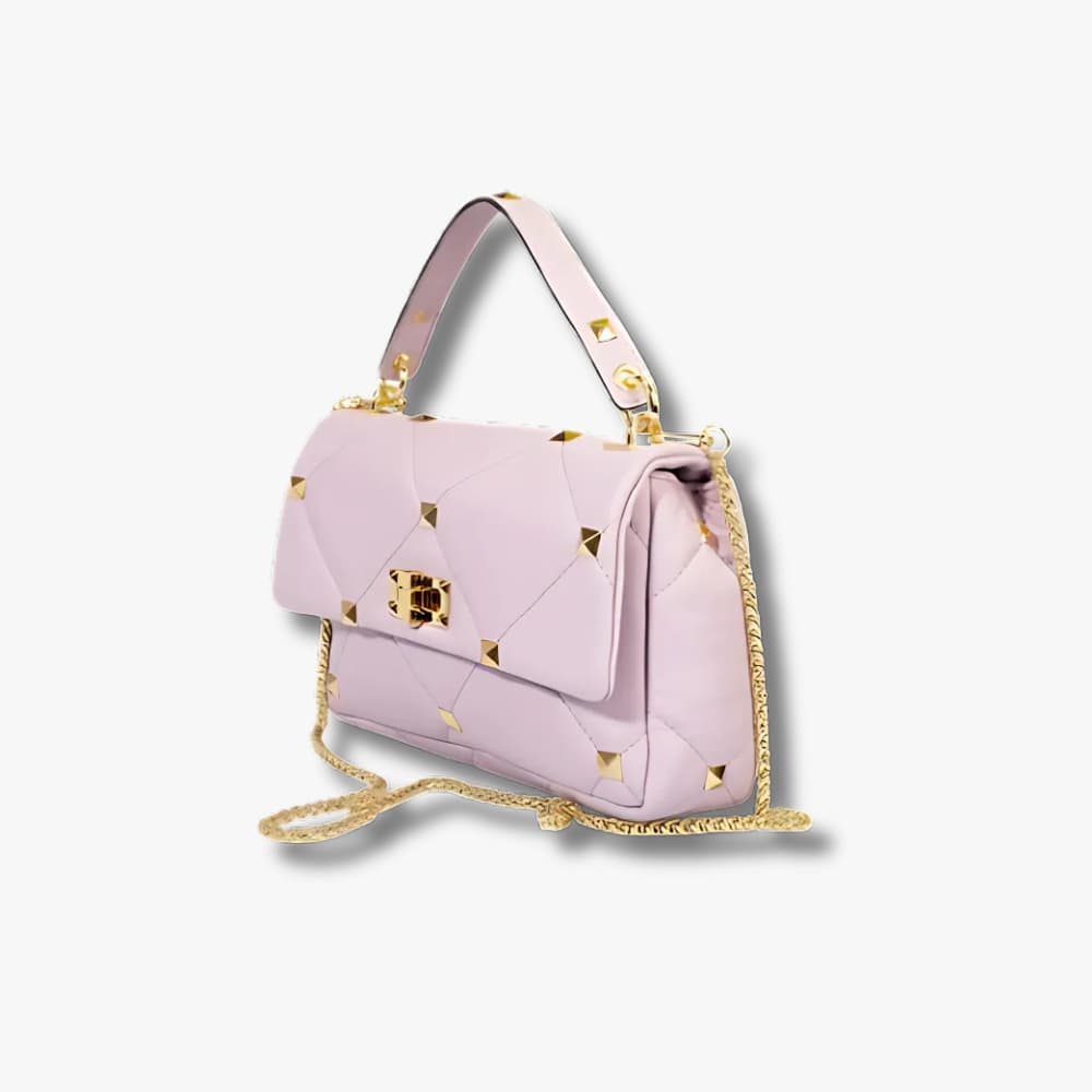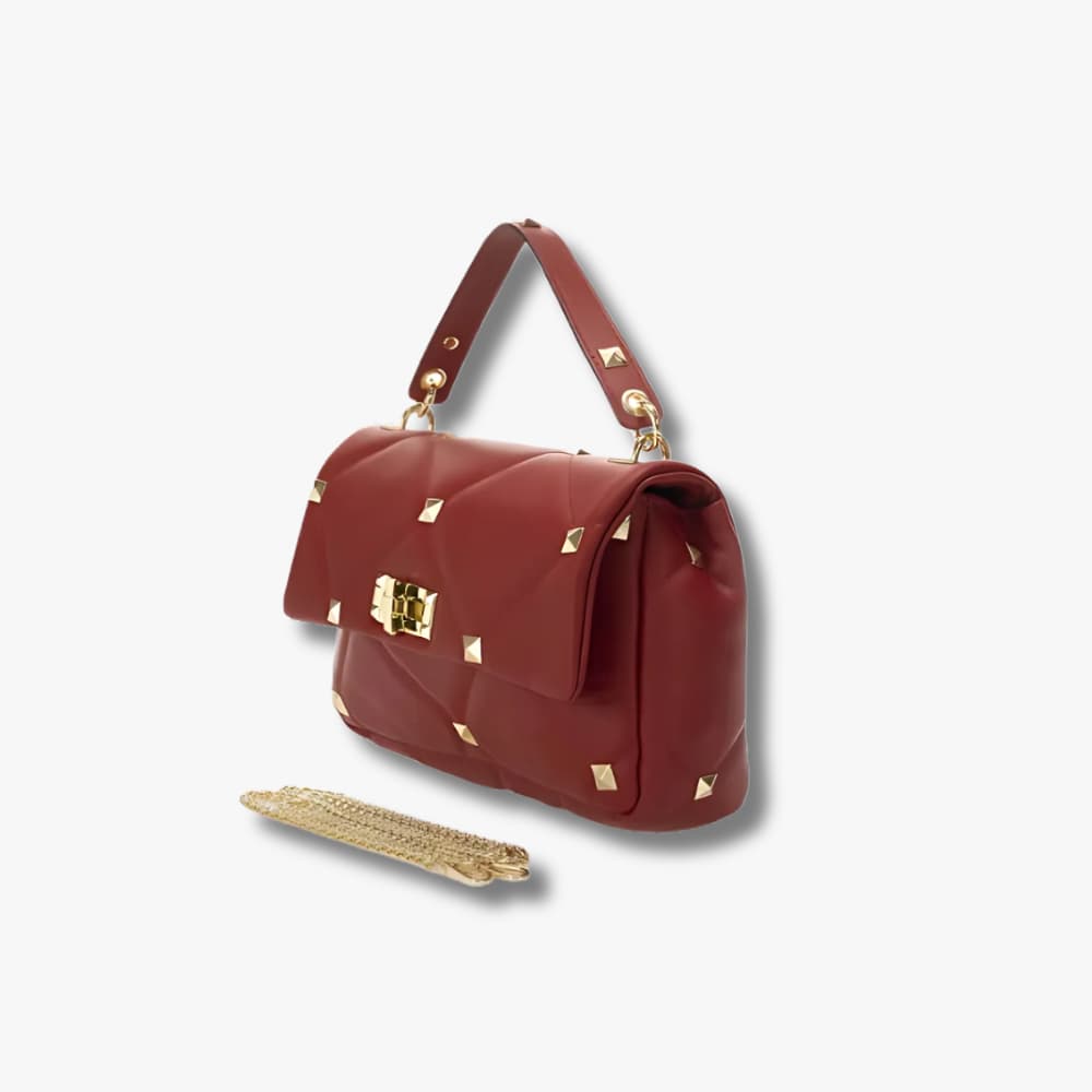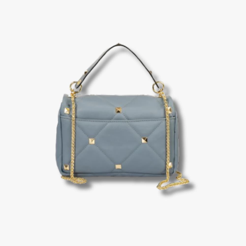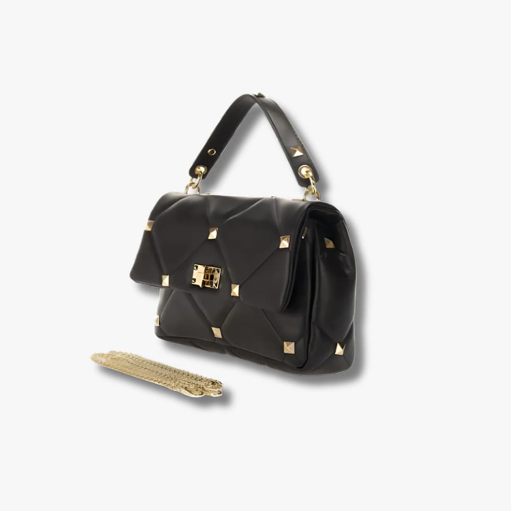 - Quilted construction with gold-tone stud embellishments