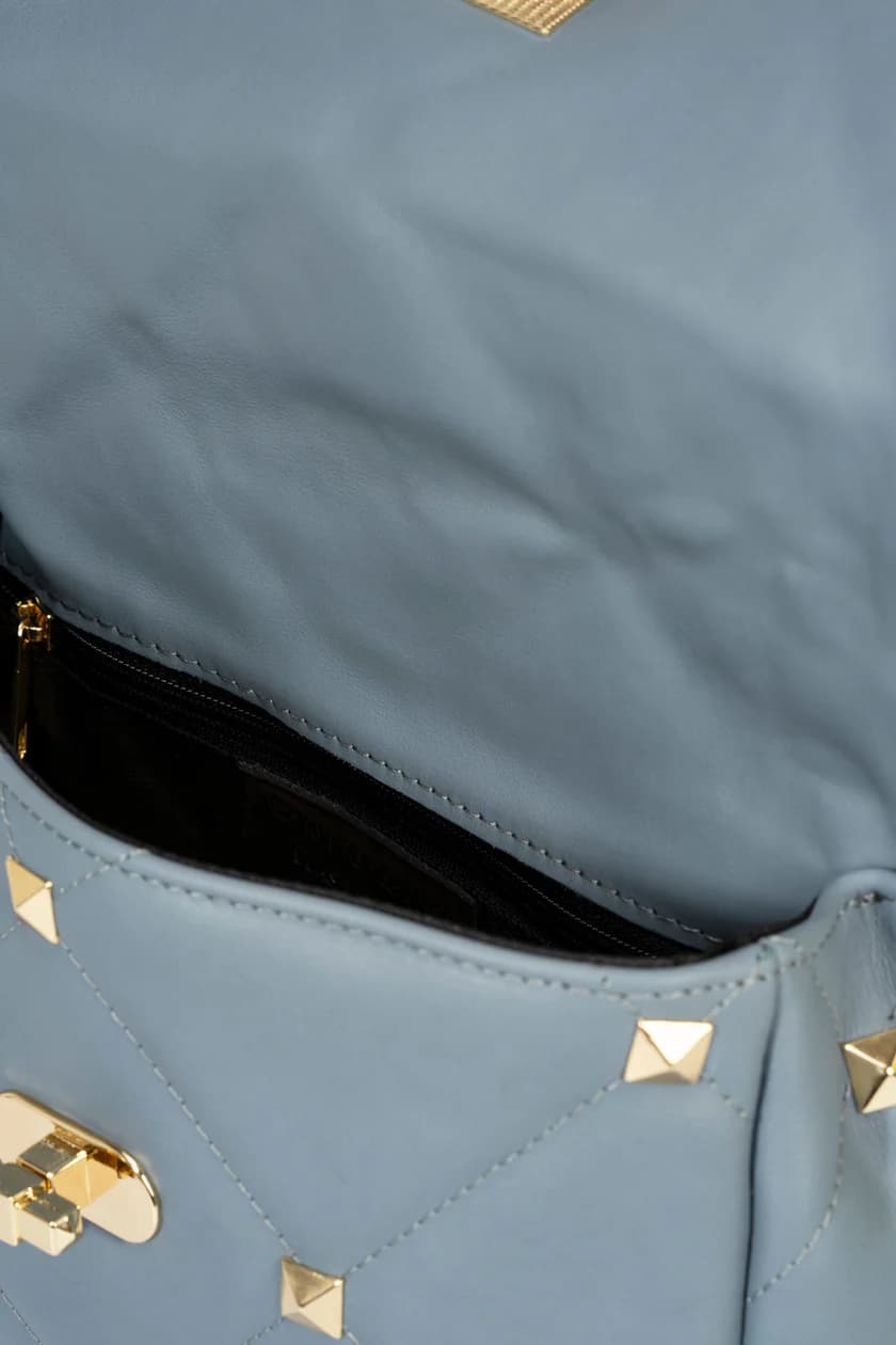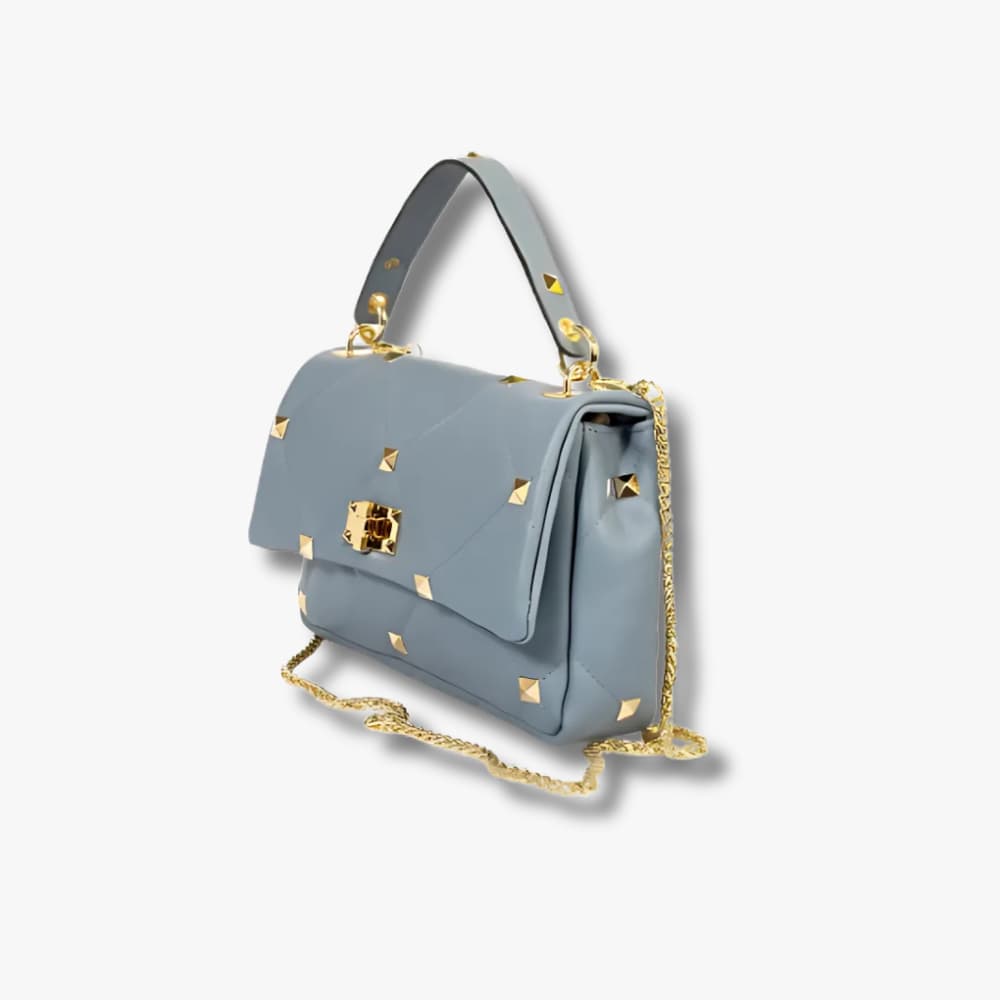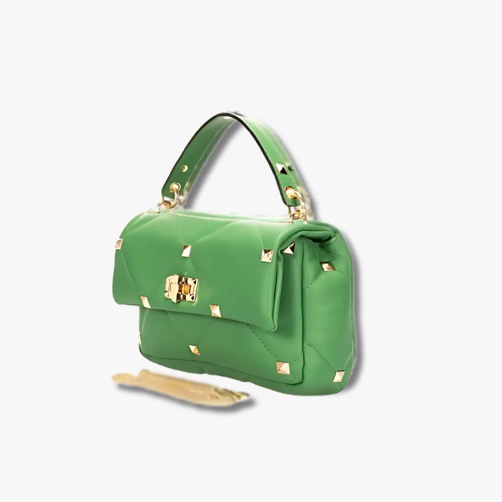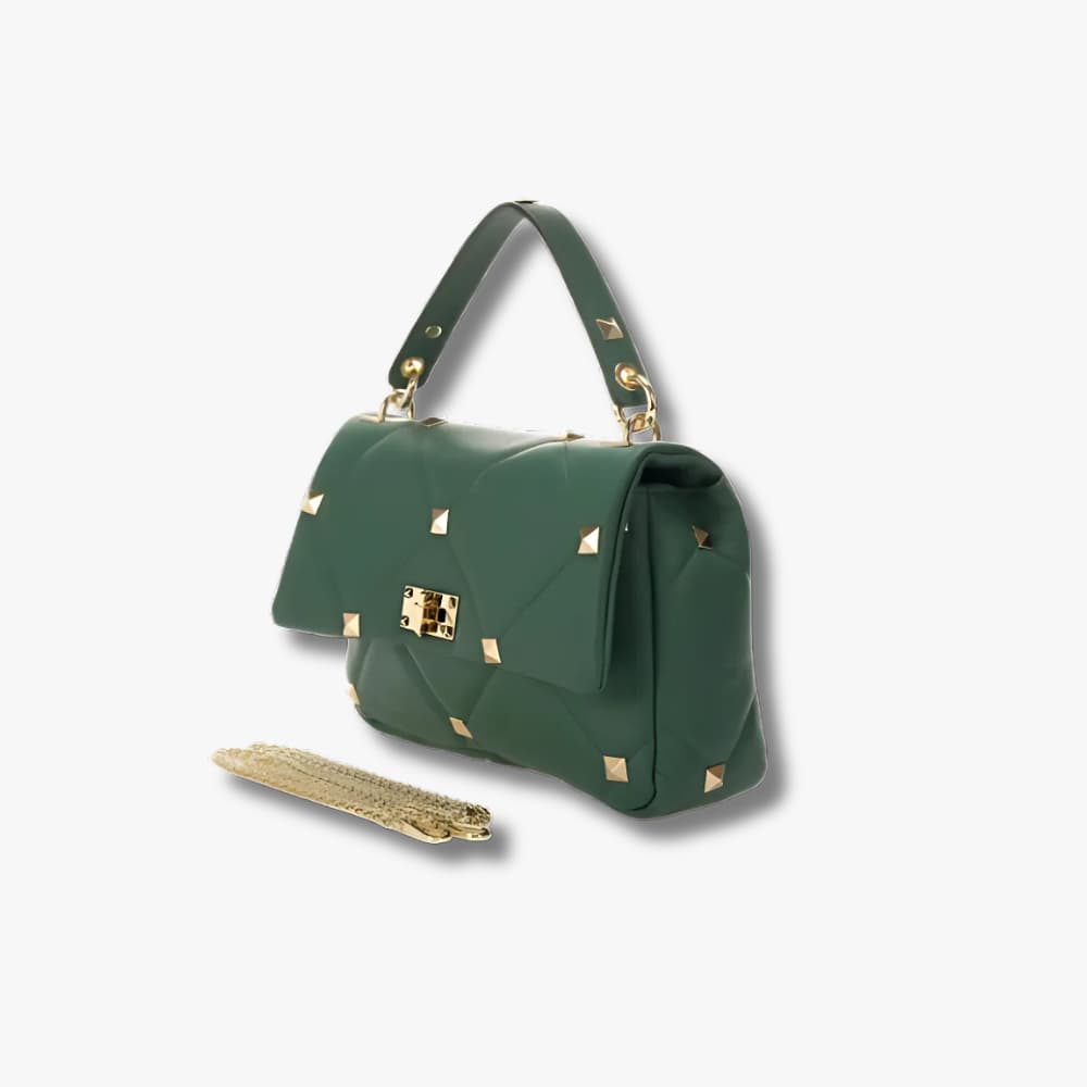 - Quilted construction with gold-tone stud embellishments