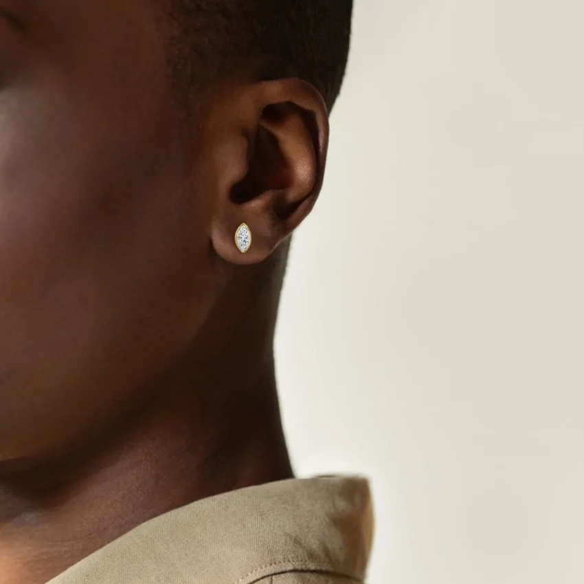 Minimalist in form, radiant in presence — the Seren earrings feature bezel-set lab-grown solitaire diamonds, perfectly balanced in a sleek modern silhouette. Crafted in 18K gold or platinum with secure lock-back posts, they offer day-to-night comfort and timeless elegance.